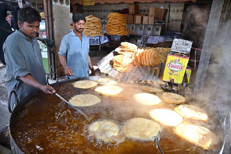KARACHI: February 17 – A vendor prepares khajla and pheOni ahead of Ramzan at Nanakwada. APP/SDQ/MAF/TZD/FHA