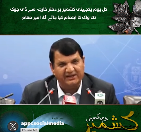 Tomorrow, a walk will be organized from Foreign Office to D-Chowk on Kashmir Solidarity Day: Amir Muqam February 6,11:32 AM