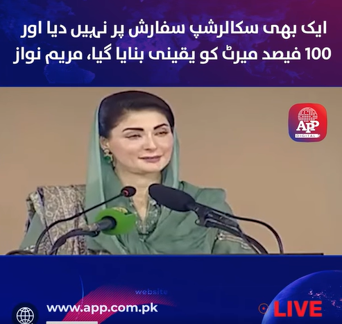 Not a single scholarship awarded on recommendation and 100% merit ensured: Maryam NawazJanuary 16,11:16 AM