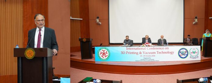 ISLAMABAD, Oct 23 (APP): Federal Minister for Planning, Development, and Special Initiatives, Professor Ahsan Iqbal on Wednesday inaugurated the First International Conference on 3D Printing and Vacuum Technology.