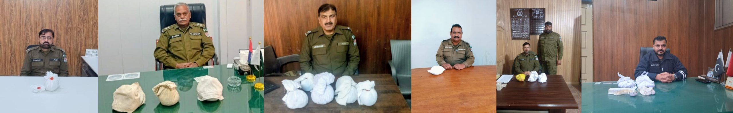 The Ratta Amral and the Wah Cantt Police arrested one suspect each with 1.86 kilograms and 1.8 kilograms of charas respectively. The Kallar Syedan and the Chauntra Police also held one suspect each, seizing 1.6 kilograms and 1.54 kilograms respectively.