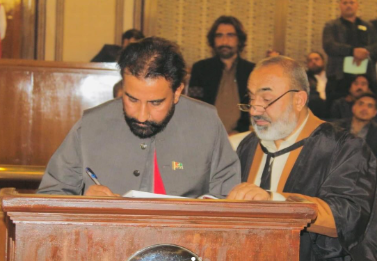 Balochistan Governor Jaffar Khan Mandokhail administered the oath to the provincial minister, with Chief Minister Mir Sarfraz Bugti also present on the occasion.