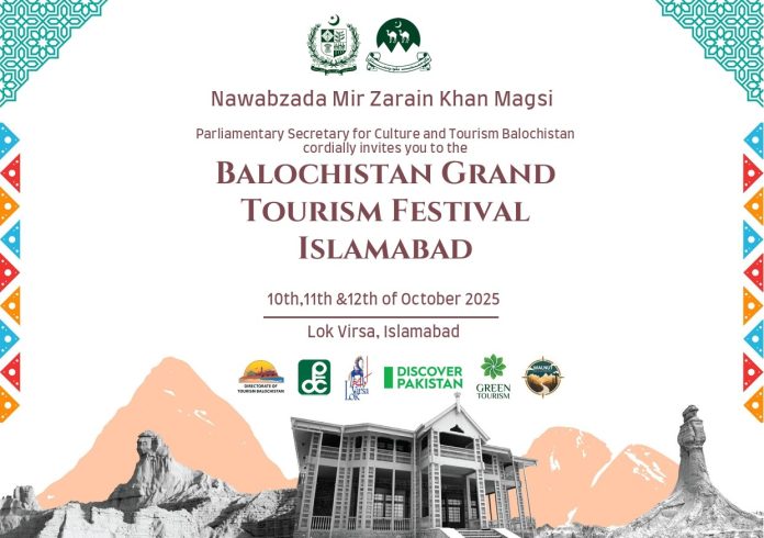 QUETTA, Oct 9 (APP):The Balochistan Department of Culture and Tourism has all set to organize the Balochistan Grand Tourism Festival in Islamabad from October 10 to 12, 2025, aiming to spotlight the province’s rich cultural heritage, natural beauty, and vast tourism potential.