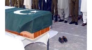 The funeral prayers were offered with official military honors, paying tribute to the officer’s supreme sacrifice in the line of duty.