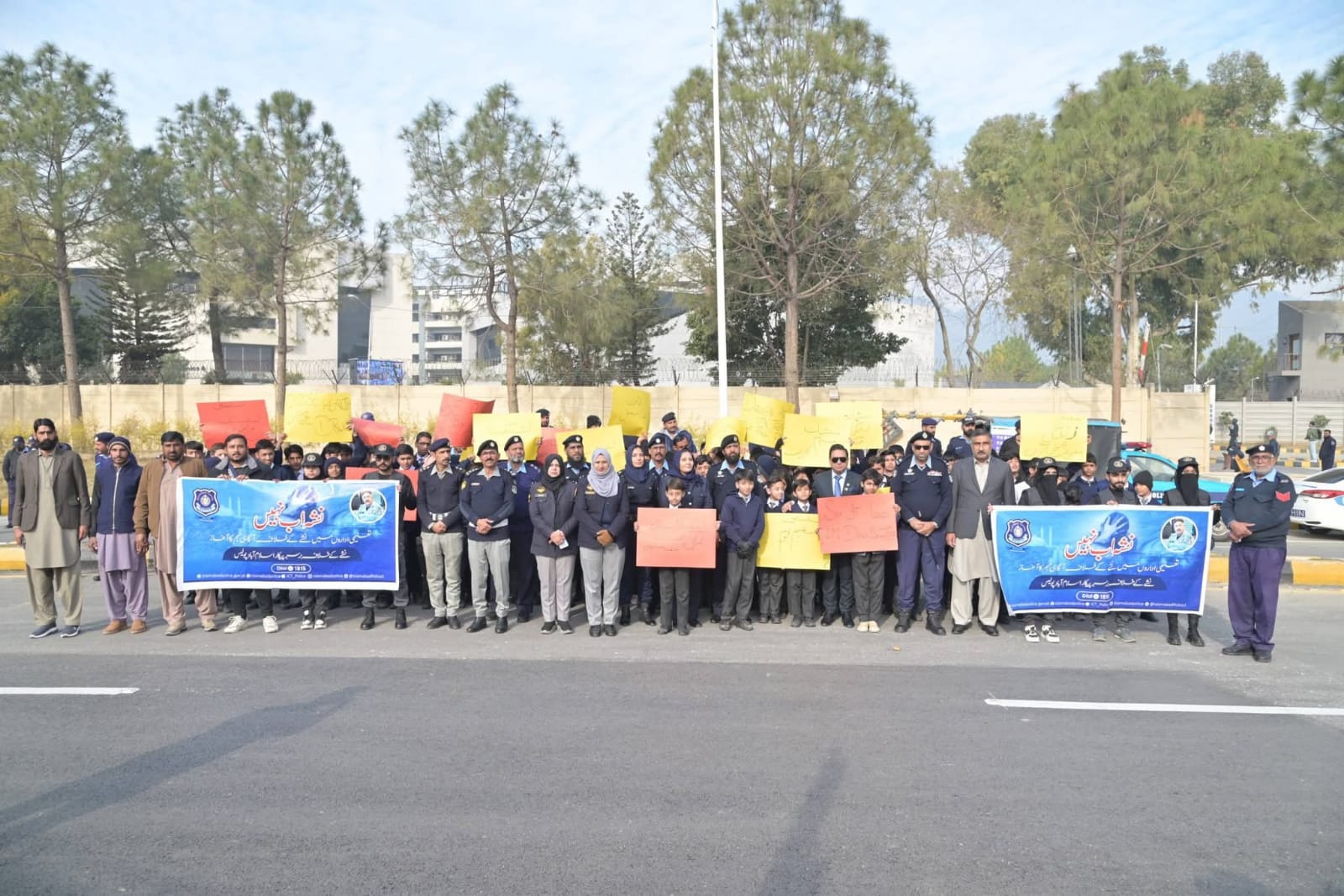 Students from Bahria University, Air University, and other educational institutions participated in large numbers, along with SP City Dr. Ayaz Hussain, SP Industrial Area Khalid Mehmood Awan, Islamabad Chamber of Commerce and Industry (ICCI) President Sardar Tahir Mehmood, civil society representatives, Friends of Police, and local residents.