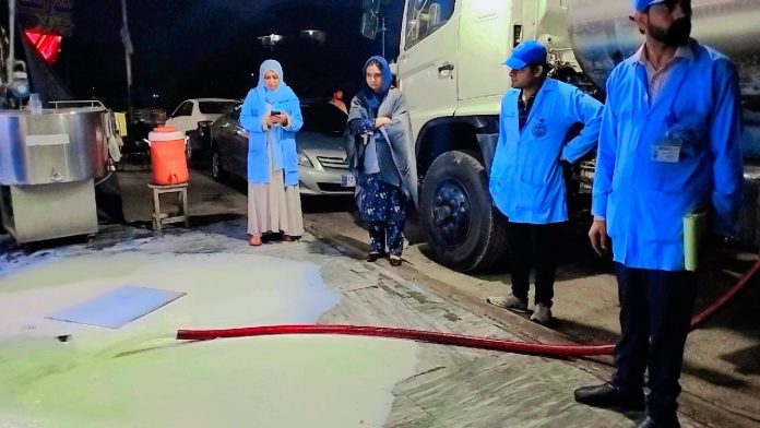 Dr. Tahira Siddique said that field tests conducted during the operation confirmed the adulteration, prompting immediate disposal of the contaminated milk to prevent it from reaching consumers. She added that several food handlers were found with poor hygiene practices, and many food points lacked basic cleanliness and sanitation arrangements.