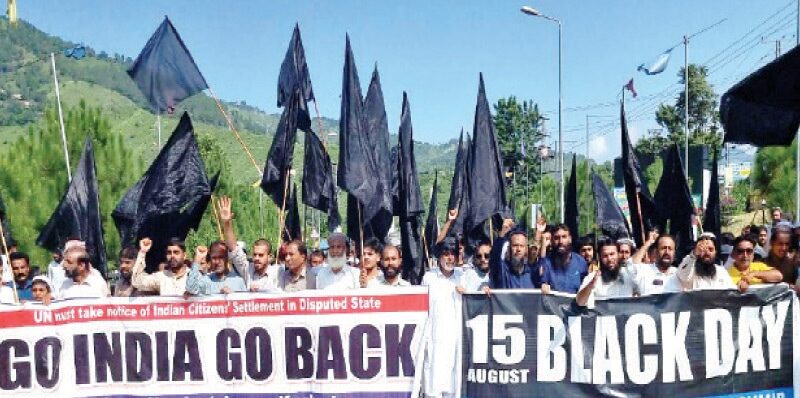 MIRPUR (AJK), Aug 15 (APP):Local fraternity, affiliated with national and regional print and electronic media here on Thursday observed India’s Independence Day as black day to express Kashmiris’ full dissociation and hatred against New Delhi for keeping bulk of their motherland illegally at gun point for last 77 years.