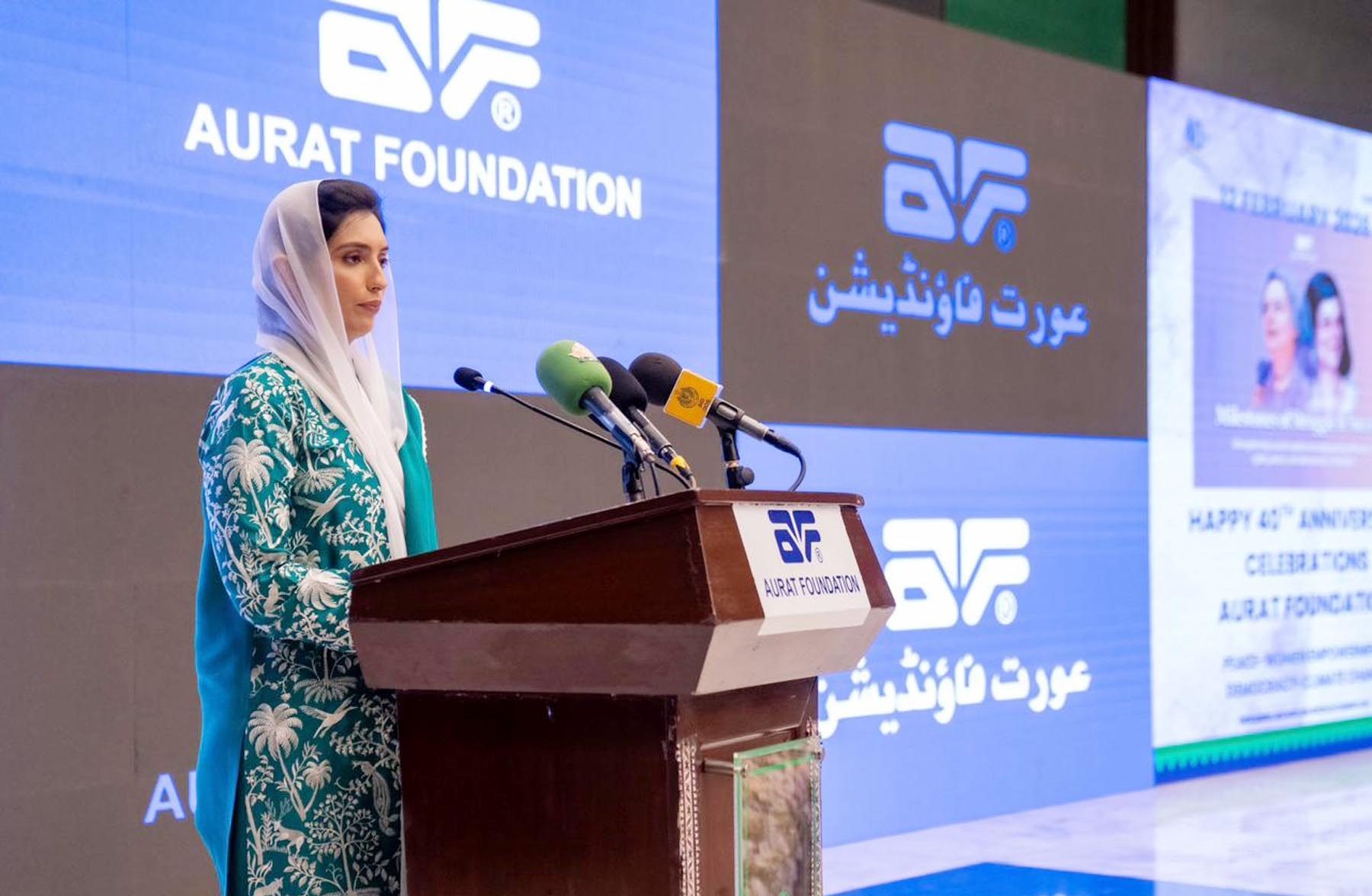 Addressing the 40th anniversary ceremony of the Aurat Foundation held at the Banquet Hall of the Chief Minister House, she said that every discussion on women’s empowerment reminded her of her mother, Shaheed Mohtarma Benazir Bhutto, who believed in meaningful participation of women across all sectors rather than their symbolic inclusion.