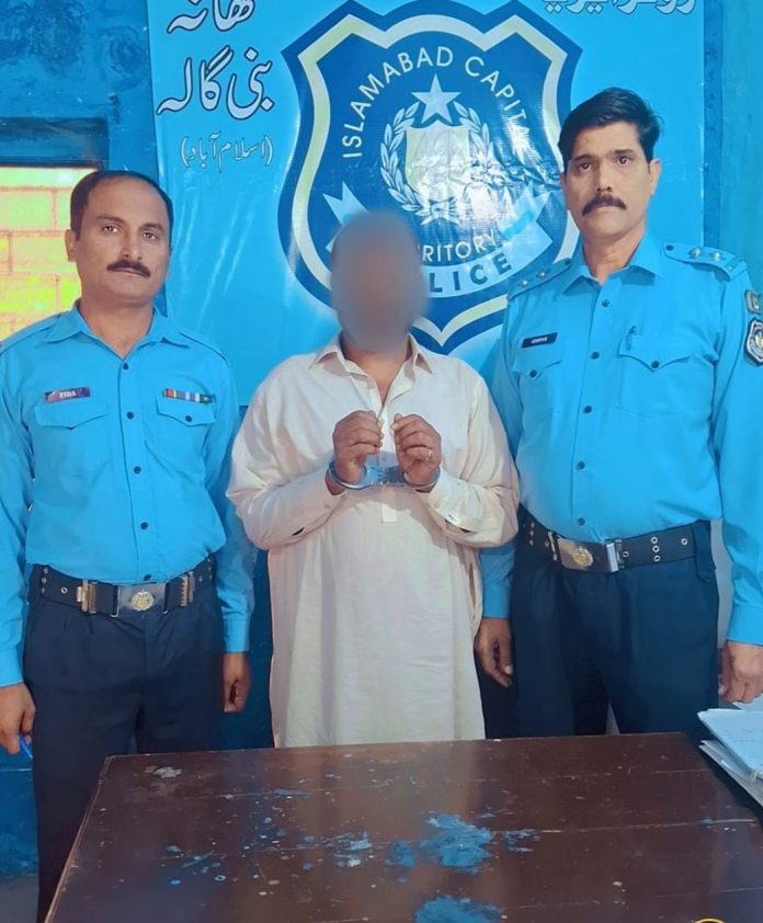 Following strict directions from DIG Islamabad Muhammad Jawad Tariq, Bani Gala Police intensified efforts to arrest the fugitive. Acting on intelligence, a police team led by Station House Officer (SHO) Nadeem Tahir, and comprising Sub-Inspector Ashfaq Ahmed, Assistant Sub-Inspector Mureed Hussain, and Constable Fida Hussain (3083/C), carried out a targeted raid and apprehended the suspect. He was shifted to the police station lock-up for further investigation.