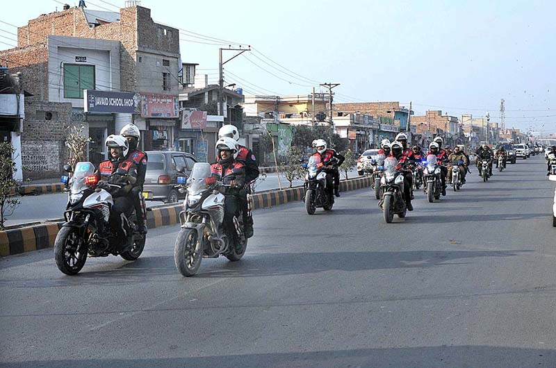 The flag march was led by Senior Superintendent of Police (SSP) Operations Malik Tariq Mehmood ans also participated by divisional SPs, SDPOs, SHOs, along with personnel from the Dolphin Squad and Elite Force.