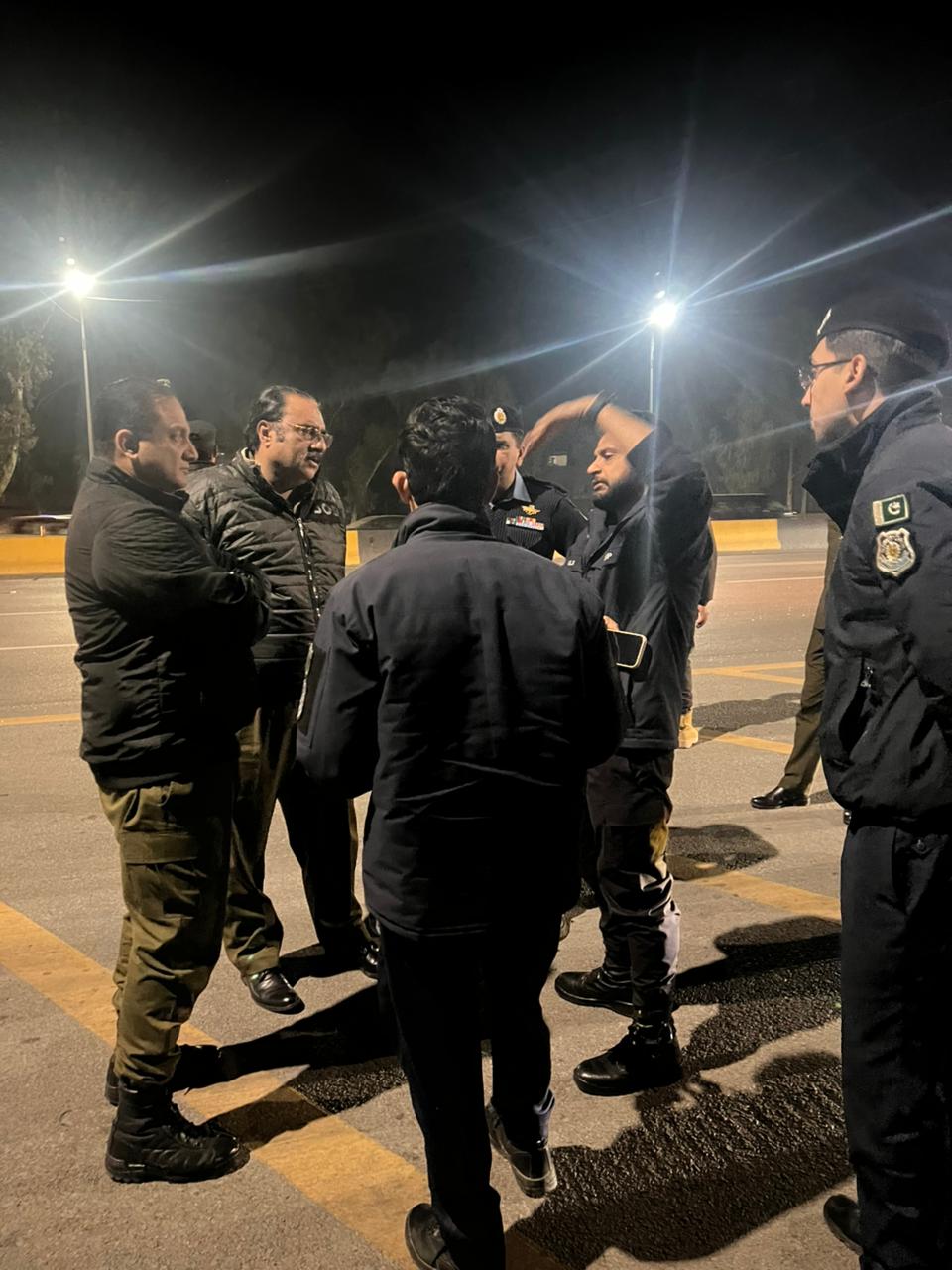 Senior Superintendent of Police (Operations) Malik Tariq Mehboob and Superintendent of Police (Potohar) visited the joint pickets along with the SSP (Operations) Islamabad to review security arrangements and discuss operational coordination. The officers inspected deployed personnel and directed them to remain alert and ensure foolproof security.