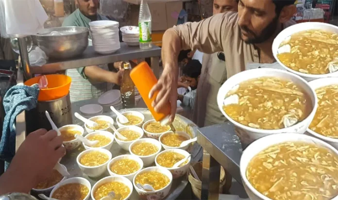 The aroma of native chicken, ghee and special sauces hangs thick in the air, drawing customers of all ages. Many settle onto traditional charpayees, especially in historic areas like Qissa Khwani Bazaar, where soup becomes more than food rather it becomes a social glue.