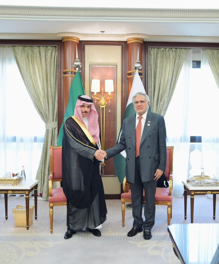 Deputy Prime Minister and Foreign Minister Senator Mohammad Ishaq Dar held a meeting with Saudi Foreign Minister Prince Faisal bin Farhan here, a DPM’s Office news release said.