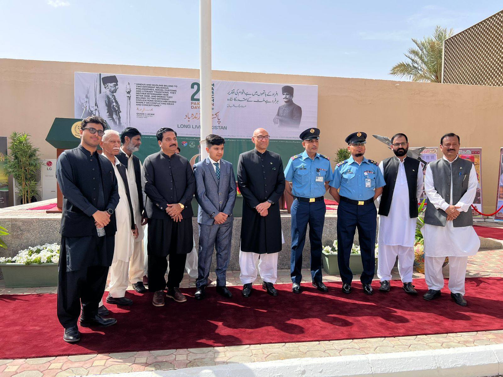 In Jeddah, Pakistan’s National flag was raised at the newly constructed, graceful building of the Consulate General of Pakistan, as the national anthem played in the background. Special messages from the President, the Prime Minister of Pakistan, and the Deputy Prime Minister/ Foreign Minister of Pakistan were read to commemorate this significant day. Syed Mustafa Rabbani, Consul General of Pakistan in Jeddah, said in his remarks on the occasion that underlined the significance of this day and spoke about the strong bonds between Pakistan and Saudi Arabia, describing it as a brotherly relationship that is deeply rooted in faith and history.