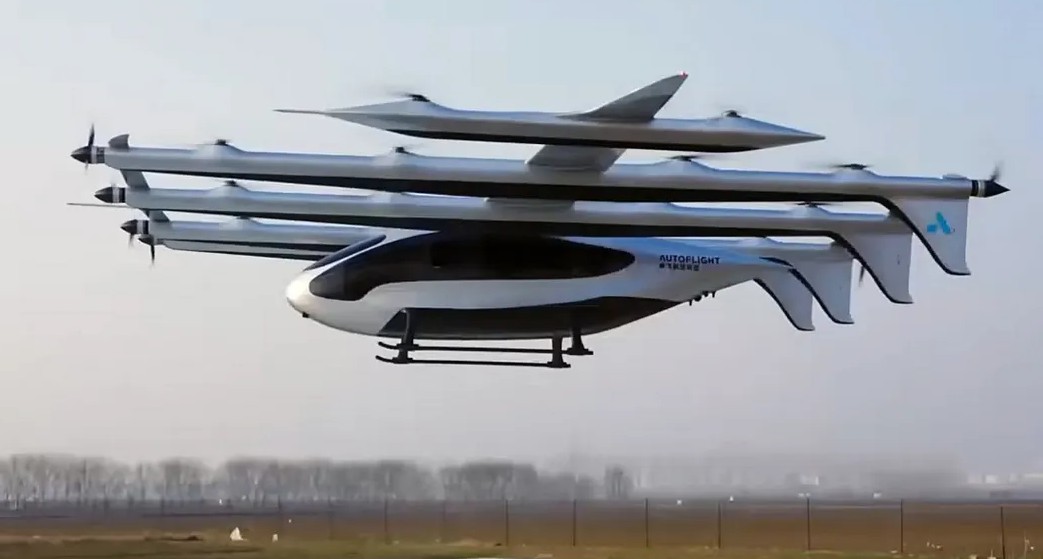 The Chinese company AutoFlight, founded in 2017, developed the Matrix, which can carry up to 10 passengers. It has a 20-meter (about 66 foot) wingspan, and is 17.1 meters long and 3.3 meters tall. (56 feet long and 11 feet tall). It can travel for an hour without charging.