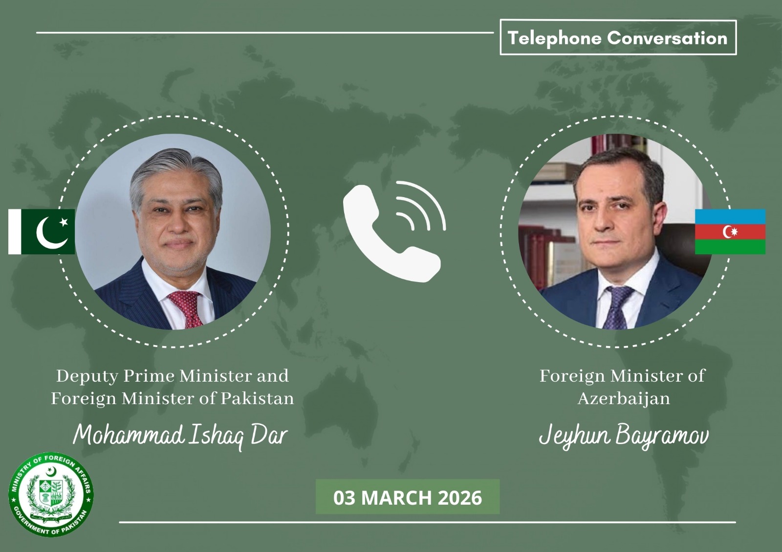ISLAMABAD, March 03 (APP): Deputy Prime Minister / Foreign Minister, Senator Mohammad Ishaq Dar, Tuesday, spoke with Azerbaijan Foreign Minister Jeyhun Bayramov to discuss current regional developments.