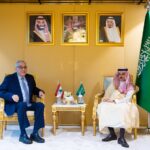 Upon his arrival at Riyadh’s Royal Airport Terminal, Prime Minister Shehbaz was warmly received by Prince Muhammad bin Abdul Rahman bin Abdulaziz, the Deputy Governor of Riyadh, along with Pakistan’s ambassador to Saudi Arabia and other senior diplomatic staff.
