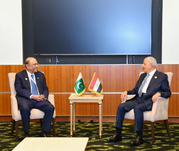 President Zardari met the Iraqi President on the sidelines of the Second World Summit for Social Development in Doha, Qatar, President Secretariat Press Wing said in a press release.