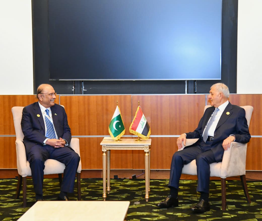 ISLAMABAD, Nov 04 (APP): President Asif Ali Zardari and President of the Republic of Iraq Dr Abdul Latif Jamal Rashid, Tuesday, reviewed the entire spectrum of Pakistan–Iraq relations and reaffirmed their mutual commitment to further strengthen the longstanding brotherly ties between the two countries.
