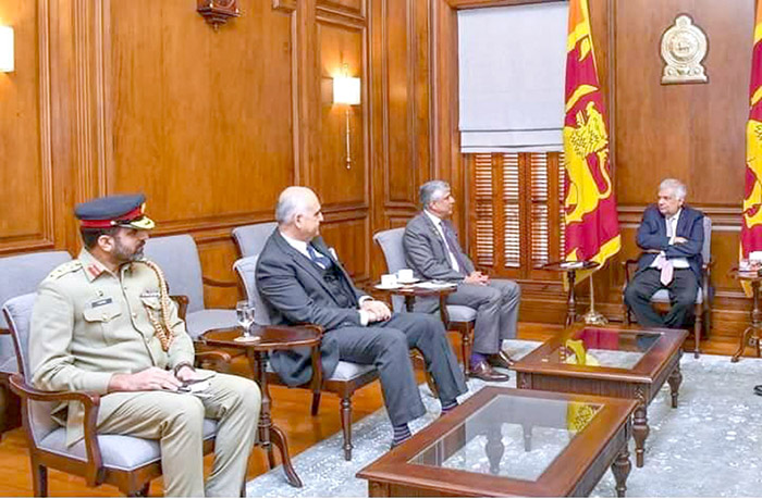 Secretary Defence Lt Gen (Retired) Hamood Uz Zaman Khan calls on President of Sri Lanka, Ranil Wickremesinghe at Presidential Secretariat Sri Lanka.