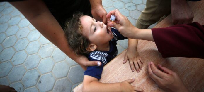 The campaign follows the recent detection of poliovirus in waste water samples in the shattered enclave which signal that the infection is still circulating in the enclave and putting children at risk.