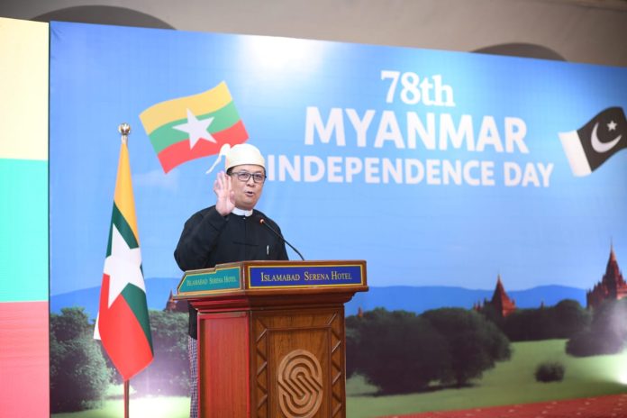 Addressing the 78th Independence Day ceremony held at a local hotel in Islamabad, the Ambassador stated that the day resonates deeply in the hearts of the Myanmar people. “We celebrate the auspicious occasion of the 78th Anniversary of Myanmar’s Independence—a day that holds profound national significance,” he said.