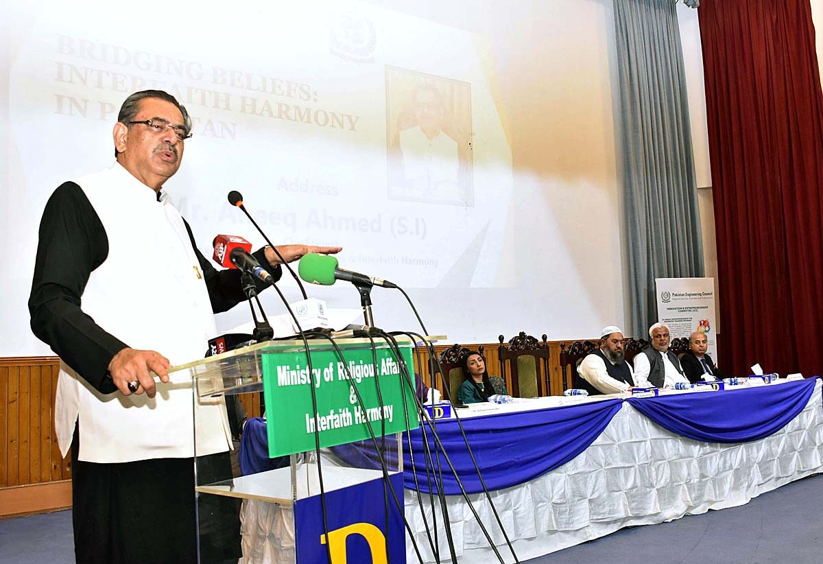 He was addressing to a seminar on “Bridging beliefs: Interfaith Harmony in Pakistan” organized by the Ministry of Religious Affairs and Interfaith Harmony in collaboration with Dawood University of Engineering and Technology (DUET) Karachi.