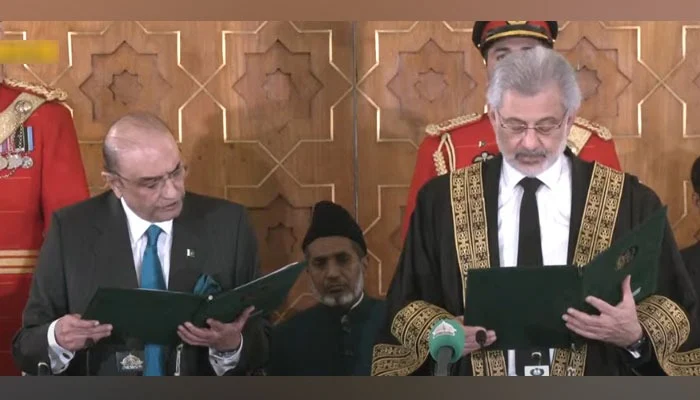 Chief Justice of Pakistan (CJP) Qazi Faez Isa administered oath of the office to President Asif Ali Zardari, in an oath taking ceremony, held at Aiwan e Sadr.
