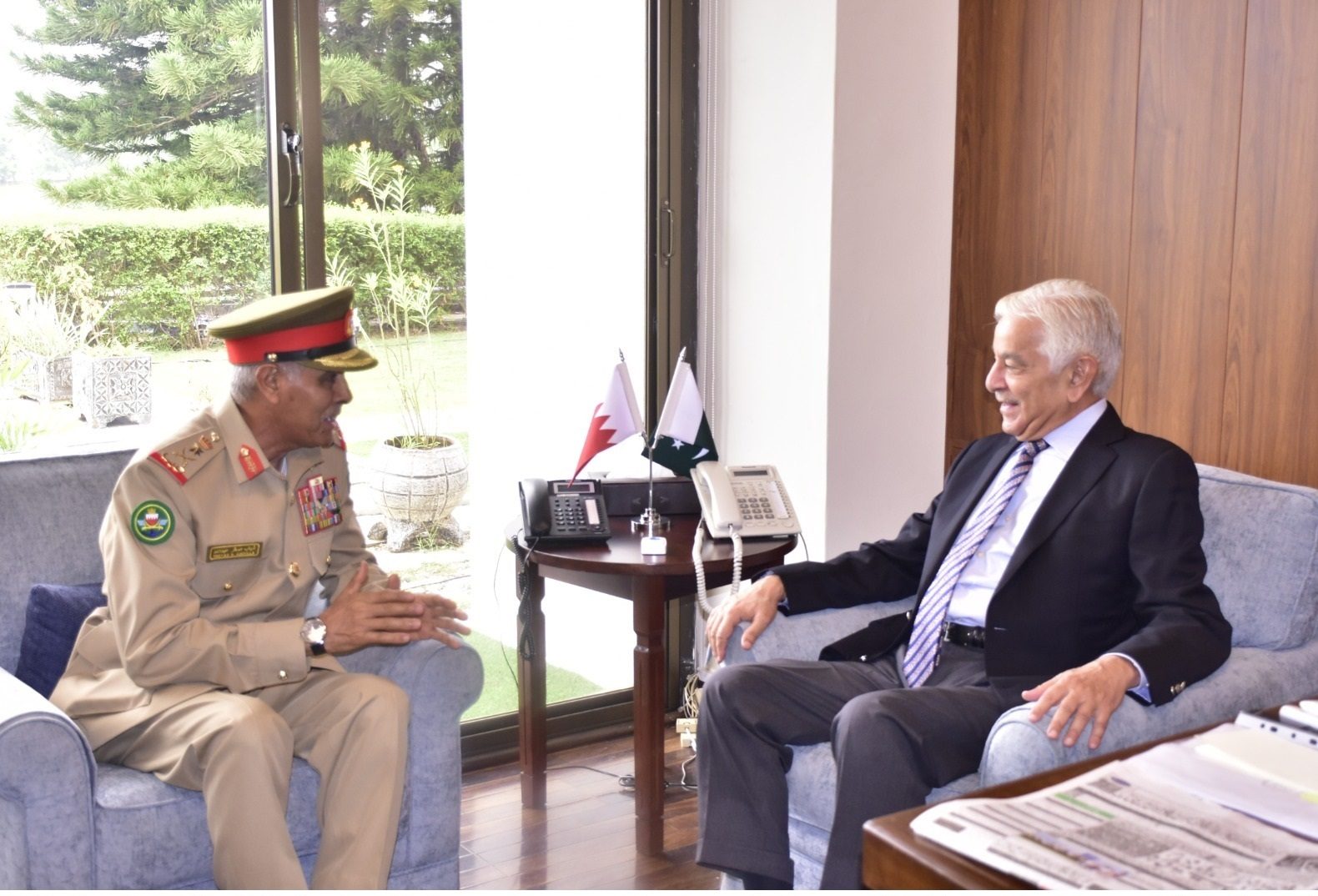 ISLAMABAD, Sep 02 (APP): Chief of Staff Bahrain Defence Forces Lieutenant General Thiab Bin Saqer Abdulla Al Nuaimi called on Minister for Defence, Khawaja Muhammad Asif here Tuesday.