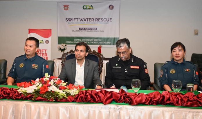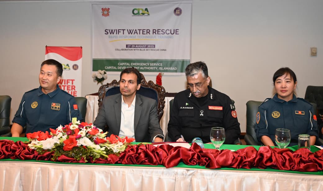 ISLAMABAD, Aug 27 (APP):The Capital Development Authority (CDA) has launched a three-day Swift Water Rescue Training Program in collaboration with China’s Blue Sky Rescue International to enhance the city’s emergency response capabilities against flooding and other disasters.