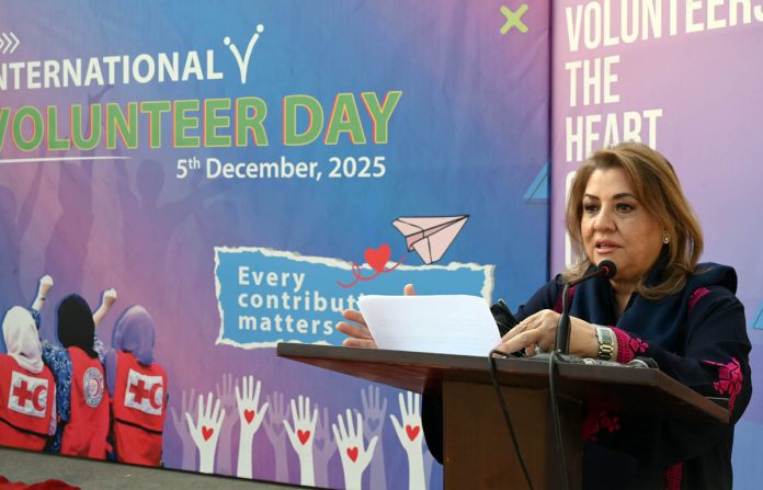 She expressed these views during a vibrant ceremony held at the PRCS headquarters on Friday to mark International Volunteer Day, observed under the theme “Every Contribution Matters.”