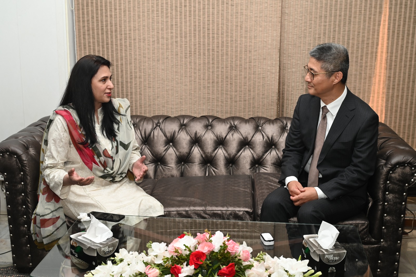 On the occasion, Shumaila Andleeb presented a bouquet and a souvenir to Mr. Gao Anming as a gesture of goodwill.