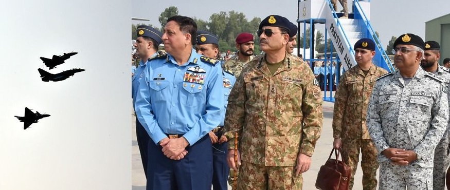 COAS expressed his satisfaction over the combat readiness of Pakistan Air Force and the progress made through various modernization and up-gradation programs. Later, he witnessed exercise operations, static display of various niche and disruptive technologies where he was briefed on the modernization efforts of Pakistan Air Force to stay abreast with contemporary security challenges which was later followed by an enthralling aerial display by PAF fighter jets. COAS also interacted with the aircrew and appreciated the resolve of PAF personnel to safeguard the aerial frontiers of Pakistan. He emphasized on the critical role of inter-service collaboration, which he believes is essential for achieving operational success.