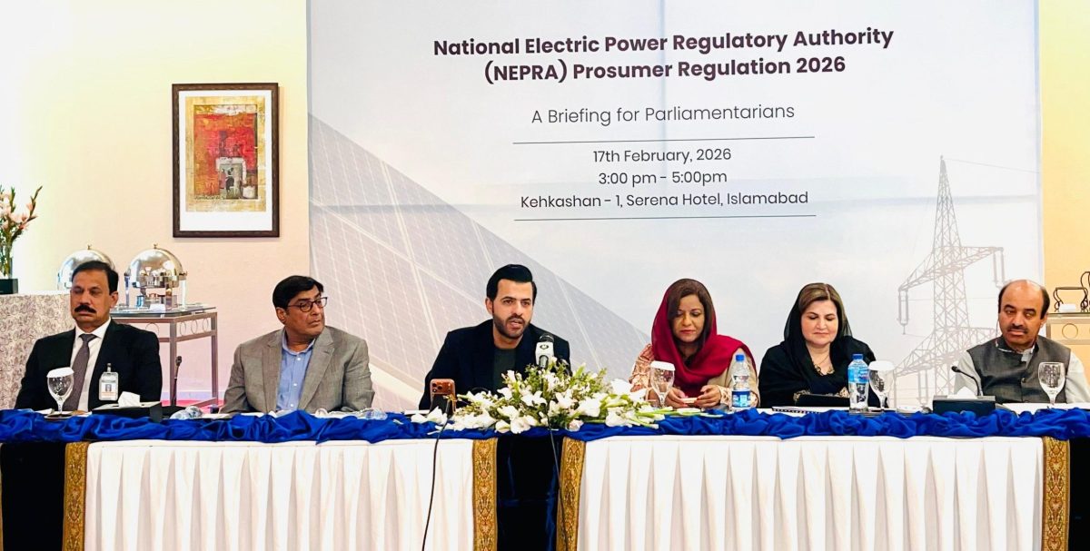ISLAMABAD, Feb 17 (APP):Parliamentary Secretary for Information and Broadcasting, Barrister Daniyal Chaudhry, chaired a briefing for parliamentarians on the National Electric Power Regulatory Authority (NEPRA) Prosumer Regulation 2026 at the Parliamentary Forum on Energy and Economy in Islamabad, urging the government to review the rules to safeguard the interests of solar energy users nationwide.