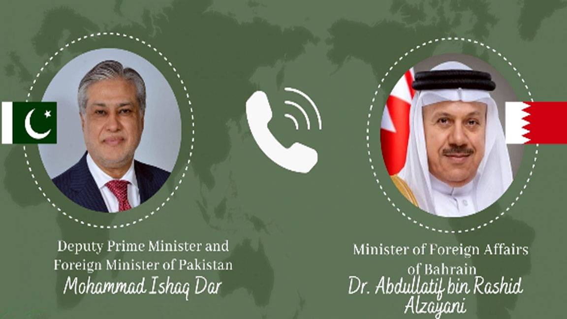 ISLAMABAD, Apr 04 (APP):Deputy Prime Minister / Foreign Minister Senator Mohammad Ishaq Dar held a telephone conversation on Saturday with Foreign Minister of Bahrain, Dr. Abdullatif bin Rashid Al Zayani and discussed the latest regional situation.