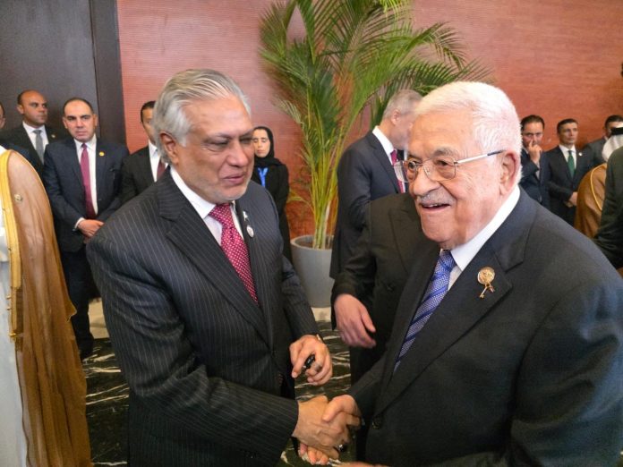 SHARM EL SHEIKH, Oct 13 (APP): Deputy Prime Minister and Foreign Minister Senator Mohammad Ishaq Dar on Monday met President Mahmoud Abbas of Palestine and reaffirmed the unwavering support of Pakistan and its people for the Palestinian cause, and for the people of Gaza.