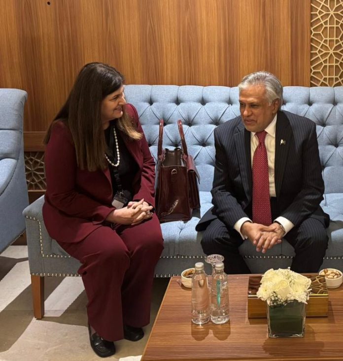 ISLAMABAD, Feb 27 (APP): Deputy Prime Minister/Foreign Minister (DPM/FM), Senator Mohammad Ishaq Dar on Friday met with the Foreign Minister of the State of Palestine, Dr. Varsen Aghabekian Shahin, on the sidelines of the Organization of Islamic Cooperation (OIC) Executive Committee meeting in Jeddah.