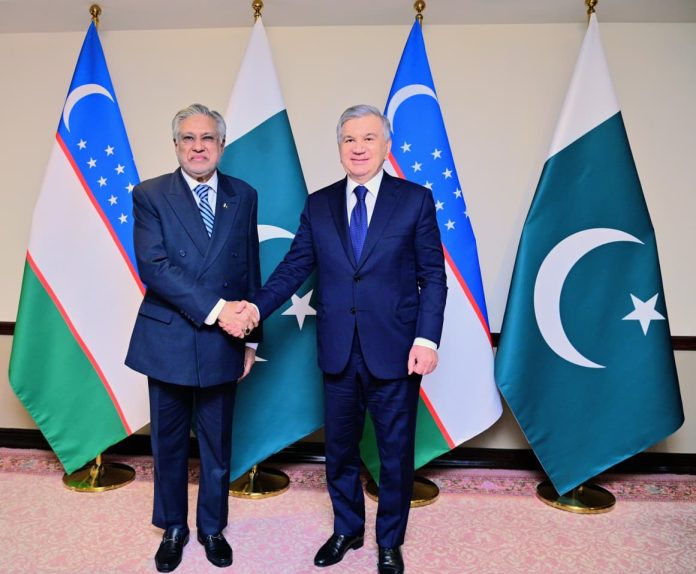 The DPM/FM conveyed the warm greetings of the President, Prime Minister and the people of Pakistan to President Mirziyoyev, a DPM’s office news release.
