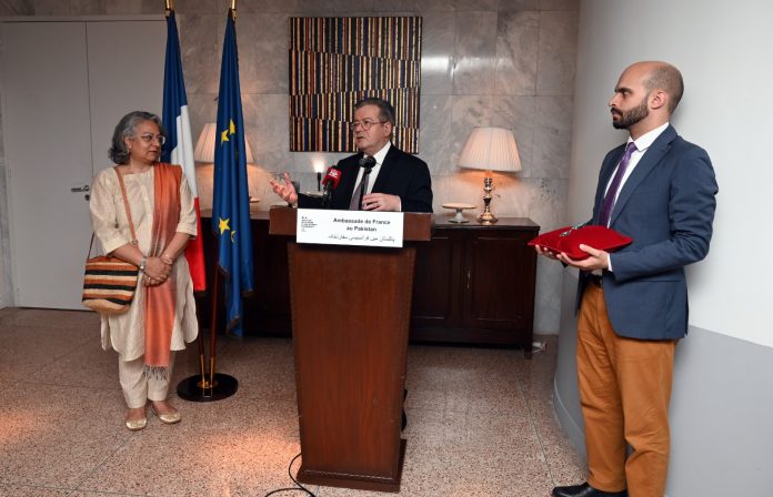 The award was conferred at a reception held here at the French Residency, attended by diplomats, artists, academics, and cultural figures.