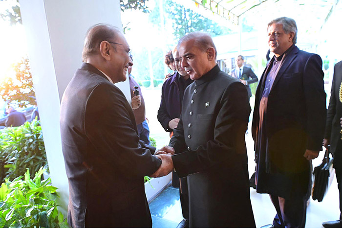 Former President Asif Ali Zardari, Chairman Pakistan People’s Party Bilawal Bhutto Zardari and Chief Minister Sindh Syed Murad Ali Shah call on Prime Minister Muhammad Shehbaz Sharif.