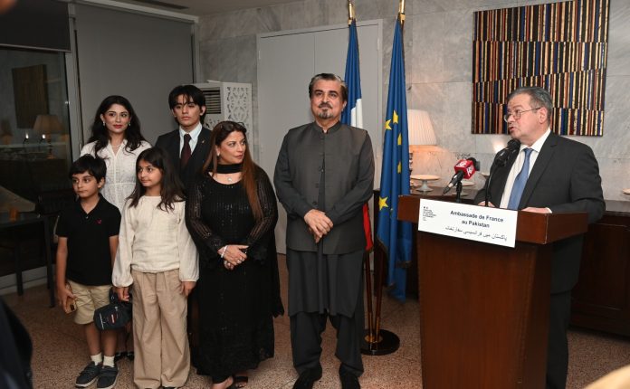 The ceremony took place at the France ambassador residence in Islamabad where diplomats, artists and cultural figures gathered to celebrate his achievements.
