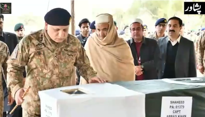 RAWALPINDI, Feb 04 (APP): The funeral prayer of Captain Abbas Khan, who embraced martyrdom while performing operational duties in the Bara area of Khyber Pakhtunkhwa, was offered at Peshawar Garrison.