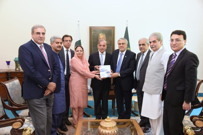 Finance Minister Ishaq Dar, State Minister Dr Ayesha Pasha, special assistants to PM Tariq Bajwa and Tariq Pasha, as well as senior officers of the finance ministry, attended the meeting.