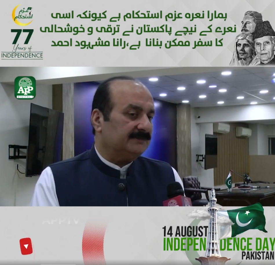 Hamara Naara Azm Istehkaam Hai Kyun kay Isi Naaray ke Neechay Pakistan ne Taraqqi o Khushhali ka Safar Mumkin banana hai. rana Mashhood Previous Post PPP leader Shazia Marri urges nation to embrace Quaid’ s vision on 77th I day Next Post Bhakkar ke Shehrion Mein bhi Jashan Azadi ke Hawalay se Josh o Kharosh …