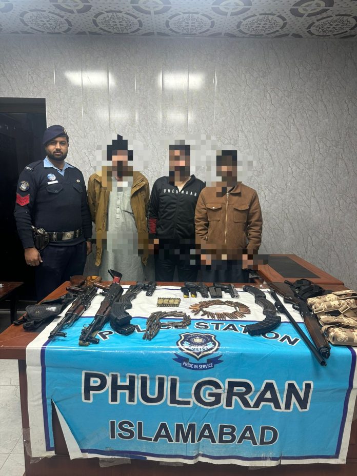 ISLAMABAD, Jan 11 (APP):Islamabad Capital Territory (ICT) Police’s Phulgran Police Station team arrested three suspects and recovered a large quantity of illegal weapons and ammunition as part of the ongoing “Weapon-Free City” campaign in the federal capital.