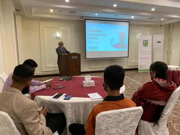 Dr. Ejaz Ahmad, Senior Program Fellow at IoU, outlined the national crisis, stating, “Around 48.5 million tons of solid waste is generated annually, with an annual growth rate of 2.4%.