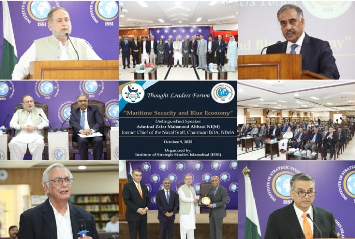 ISLAMABAD, Oct 10 (APP): In the latest edition of its Thought Leaders Forum (TLF), the Institute of Strategic Studies Islamabad (ISSI) hosted former Chief of the Naval Staff, Admiral (R) Zafar Mahmood Abbasi NI(M). The session was titled, ‘Maritime Security and Blue Economy.’