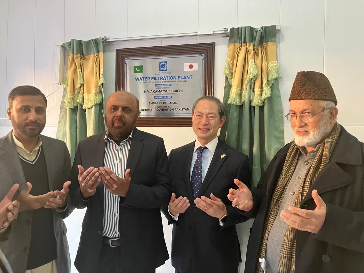 The initiative was financed through Japan’s Grant Assistance for Grassroots Human Security Projects (GGP) Programme, with a financial contribution of 70,201 US dollars. The filtration plants have been installed in Peoples Colony-II, Badar Colony, Kuri Wala, 40 Mor Jaranwala, Chak No. 421 GB, Hussainabad in Faisalabad District, and Bamba Bola in Okara District. The inauguration ceremony was attended by officials from the Japanese Embassy, representatives of Alkhidmat Foundation, and members of the beneficiary communities.