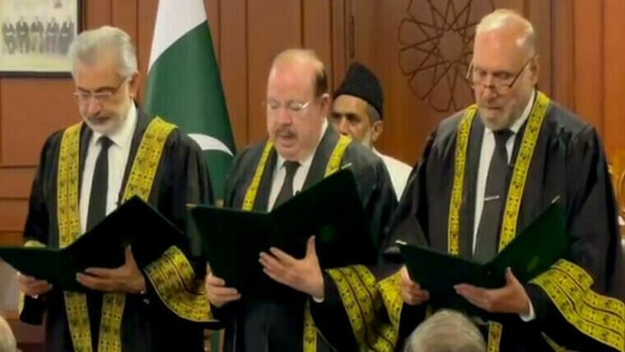 ISLAMABAD, Jul 29 (APP):Justice Qazi Faez Isa, Chief Justice of Pakistan on Monday administered the oath of offices to Justice Sardar Tariq Masood and Justice Mazhar Alam Khan Miankhel as Ad-hoc Judges, Supreme Court of Pakistan.