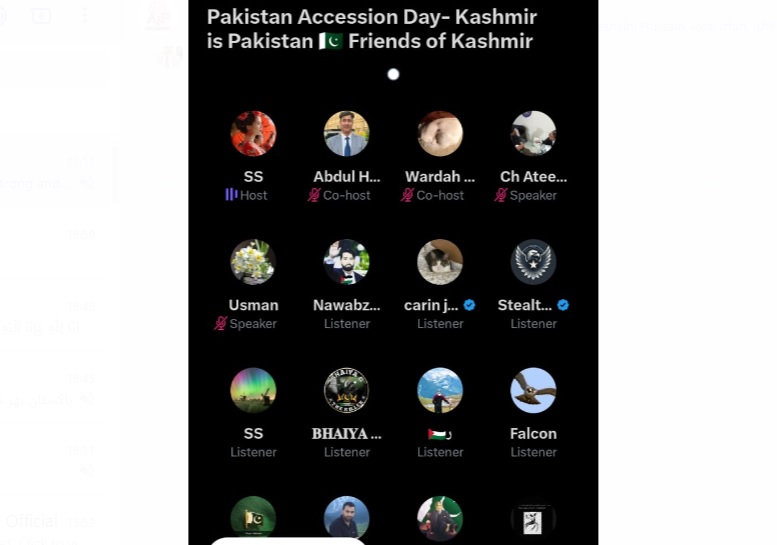 The FoK organised an online webinar on X space formerly Twitter on the occasion of “Pakistan Accession Day” where Ghazala Habib, Chairperson of Friends of Kashmir International, Deputy Chairman and Abdul Hameed Lone, Social Worker Sadia Sattar, Atiqul Rasool of Islamabad Bar Council, Warda Hashmi and others participated in it.